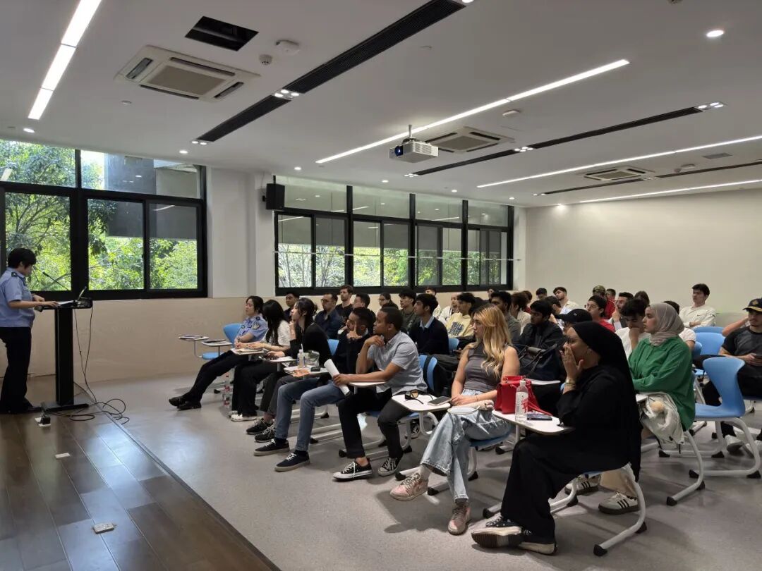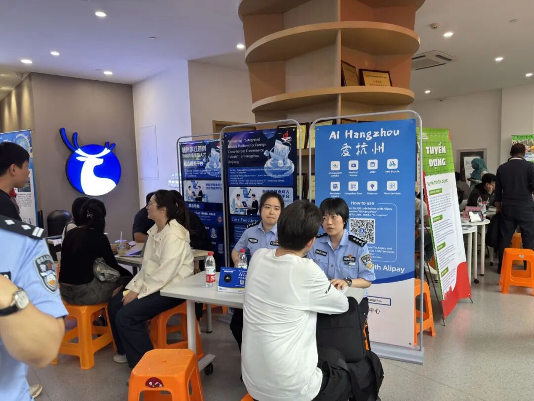 为保障实习与就业合规性,活动特设“政策宣讲会”环节。钱塘区公安局出入境管理大队警官围绕外籍人才停居留政策、签证办理流程、在杭创新创业扶持等主题,为企业和学生提供权威解读,并强调合法合规操作的重要性,为国际人才留华发展保驾护航。