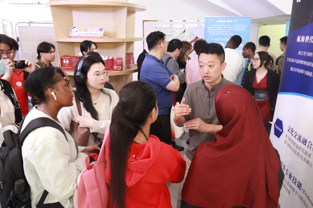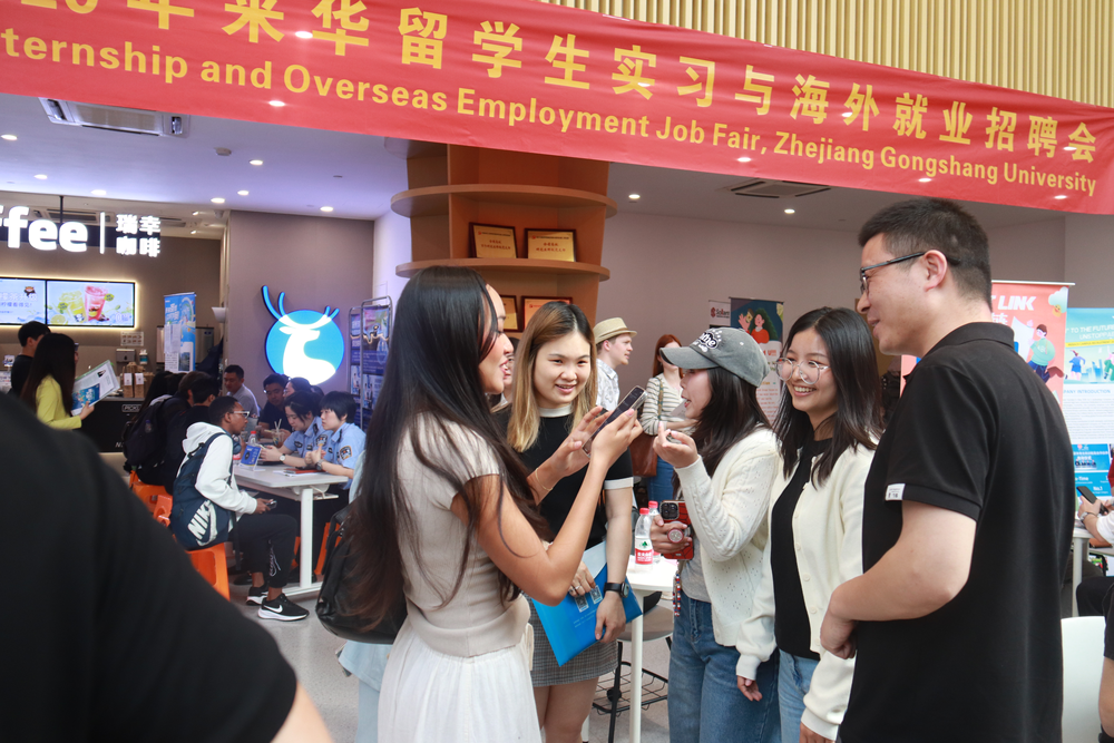 为积极响应国家“国际人才助力走出去”战略,深化校企协同合作,搭建优质国际人才交流平台,2025年4月23日,由浙江工商大学国际教育学院、招生与就业指导处主办的“浙江工商大学2025年来华留学生实习与海外就业招聘会”在下沙校区学生活动中心创新岛及多功能厅成功举办。本次活动有60余家行业标杆企业参与,共提供岗位超400个,并有300余名来自在杭10余所高校国际学生参与,有效搭建起校企协同育人平台。