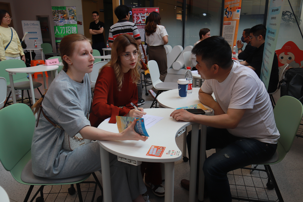 招聘会现场气氛热烈,来自泰国、俄罗斯、印度西亚、马来西亚和巴基斯坦等60余国的300余名留学生携简历踊跃参与,浙江大学、浙江工业大学、杭州电子科技大学、浙江理工大学、浙江财经大学、中国计量大学、浙江科技大学、浙江外国语学院、浙江商业职业技术学院、浙江经贸职业技术学院和浙江金融职业学院等兄弟院校学生亦慕名而来,在现场与企业负责人深度沟通与交流。