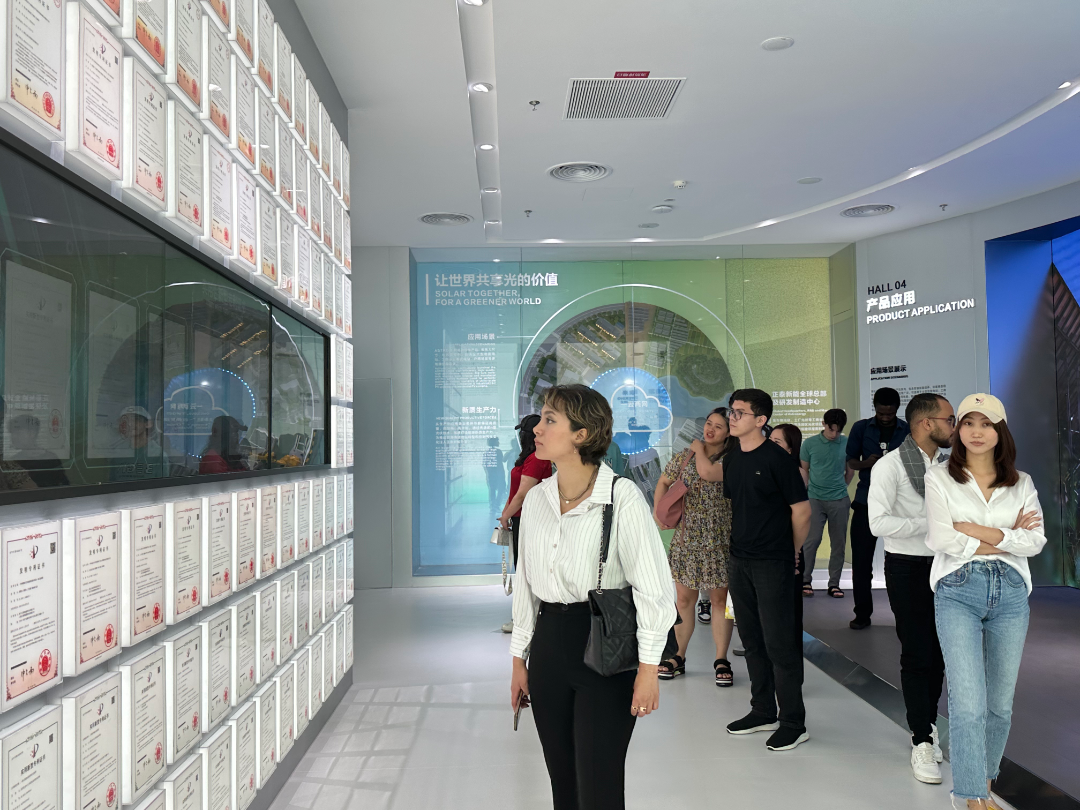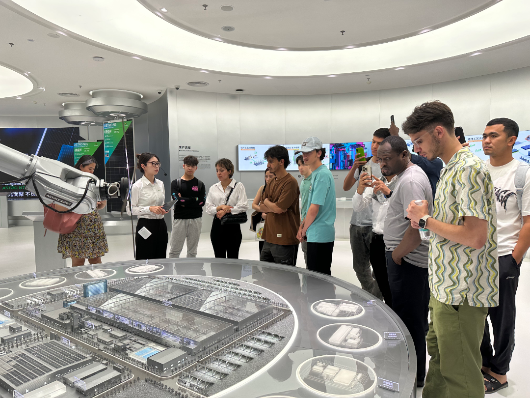 活动当日,国际学生在园区工作人员的引导下,深入参观了正泰新能创新中心。从光伏组件的自动化生产线到智能仓储系统,同学们近距离感受了中国新能源企业在智能制造、绿色技术领域的创新实力,对正泰集团“一云两网”战略驱动下的产业布局表现出浓厚兴趣。