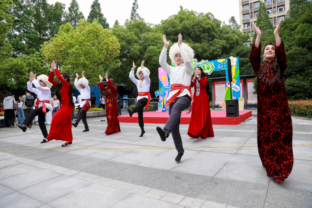 文化节的舞台上,一个个精彩的节目将文化节推向高潮。“亚洲风情”单元中,马来西亚民歌的悠扬旋律、印尼与韩国学生的特色歌曲和学校中国武术协会的同学们行云流水的武术表演勾勒出亚洲文化的多元图景;“丝路交响”单元里,俄罗斯与土库曼斯坦的民族舞蹈热情奔放,舞者们的每一个旋转、每一个手势都诉说着民族的历史与风情;非洲校友带来的潮流Hiphop街舞,带领着大家一起共舞。在一阵阵的观众的欢呼声中,不同文明的节拍在此共鸣,奏响了跨文化交流的和谐乐章。