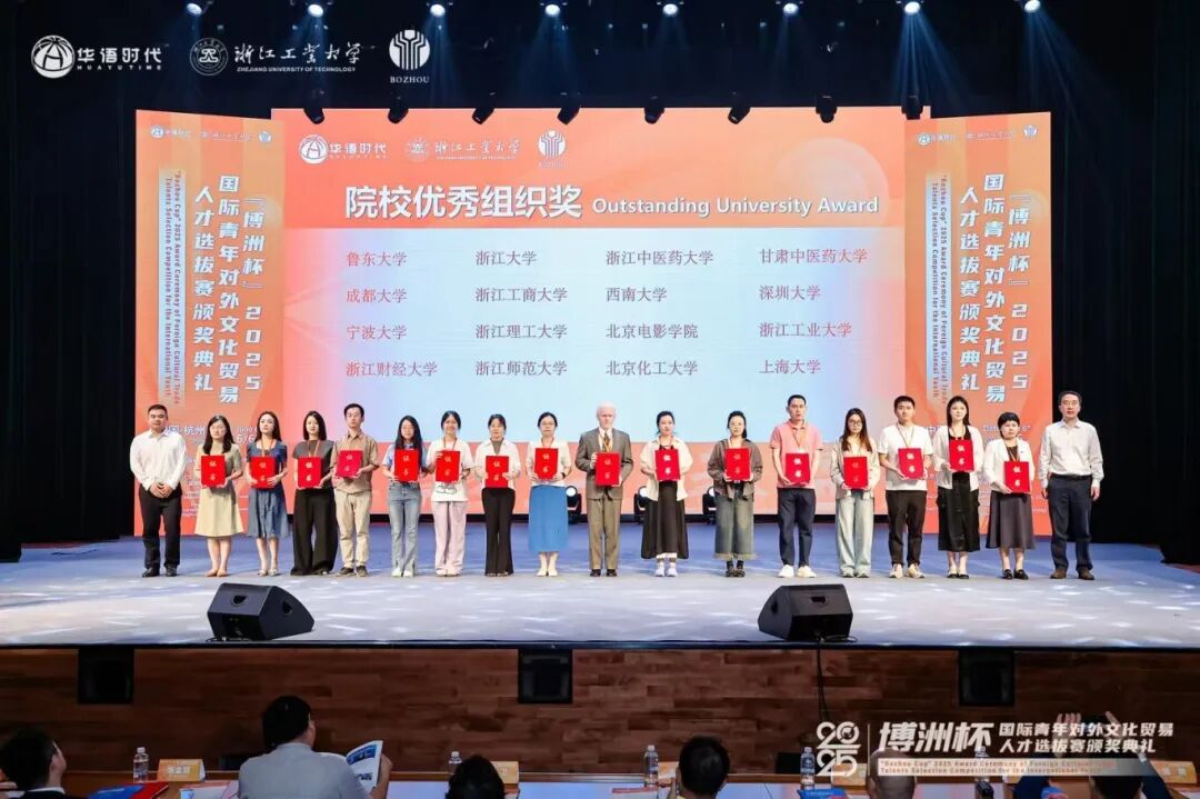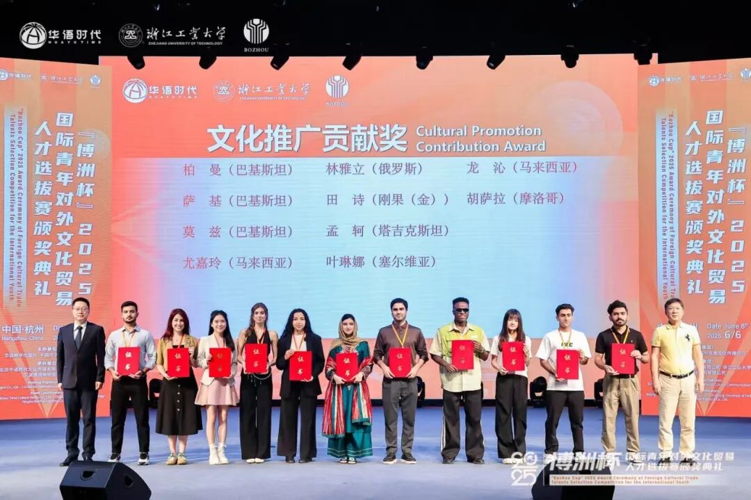 6月6日,由华语教学出版社、中国外文局文化传播中心主办,北京华语时代文化传媒有限公司、浙江工业大学和宁波博洲照明有限公司共同承办的“博洲杯”2025国际青年对外文化贸易人才选拔赛颁奖典礼于杭州市圆满举行。中国外文局综合业务部一级巡视员黄卫出席本次活动,联合国可持续发展研究院、浙江省教育厅国际合作与交流处等相关单位领导嘉宾莅临活动现场,留学生代表、院校代表、指导教师代表、企业代表等百余位嘉宾共赴此次盛典。