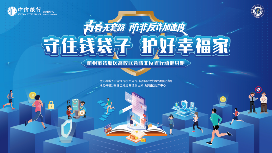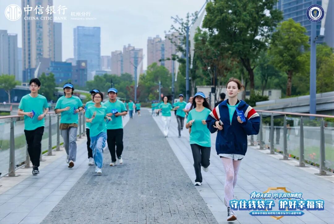 本次健身跑活动以 “青春无套路,反诈加速度”为主题,由中信银行杭州分行和杭州市公安局钱塘区分局联合多所高校共同举办。活动路线精心设计,沿途设置多个反诈知识打卡点,学生们在挥洒汗水的同时,还能通过趣味问答、情景模拟等形式,学习常见诈骗手段、防范技巧,真正将反诈知识 “跑” 进心里!