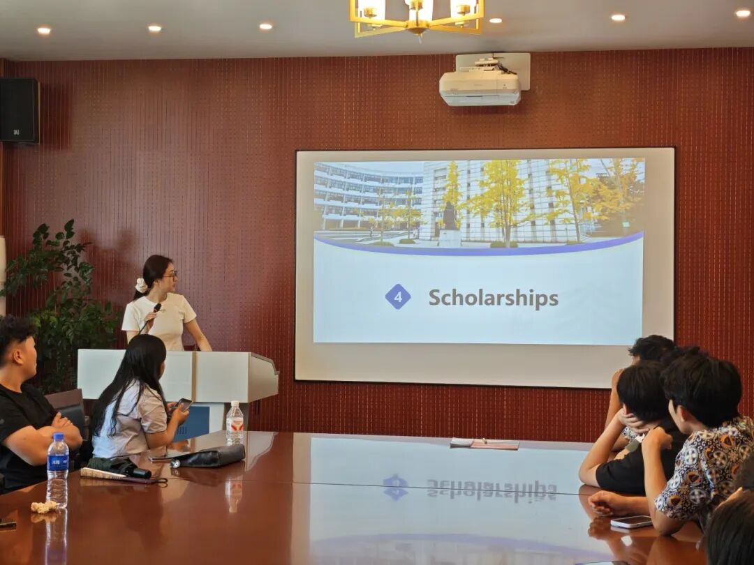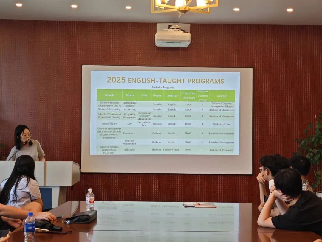 在国教学院精心筹备的宣讲会上,招生老师们围绕学校发展历程、学科特色、人才培养模式等方面进行系统介绍,着重讲解了招生专业与奖学金政策。通过详实的数据与生动的案例,全面展示了我校办学实力与育人特色,激发了印尼师生对留学商大的浓厚兴趣。