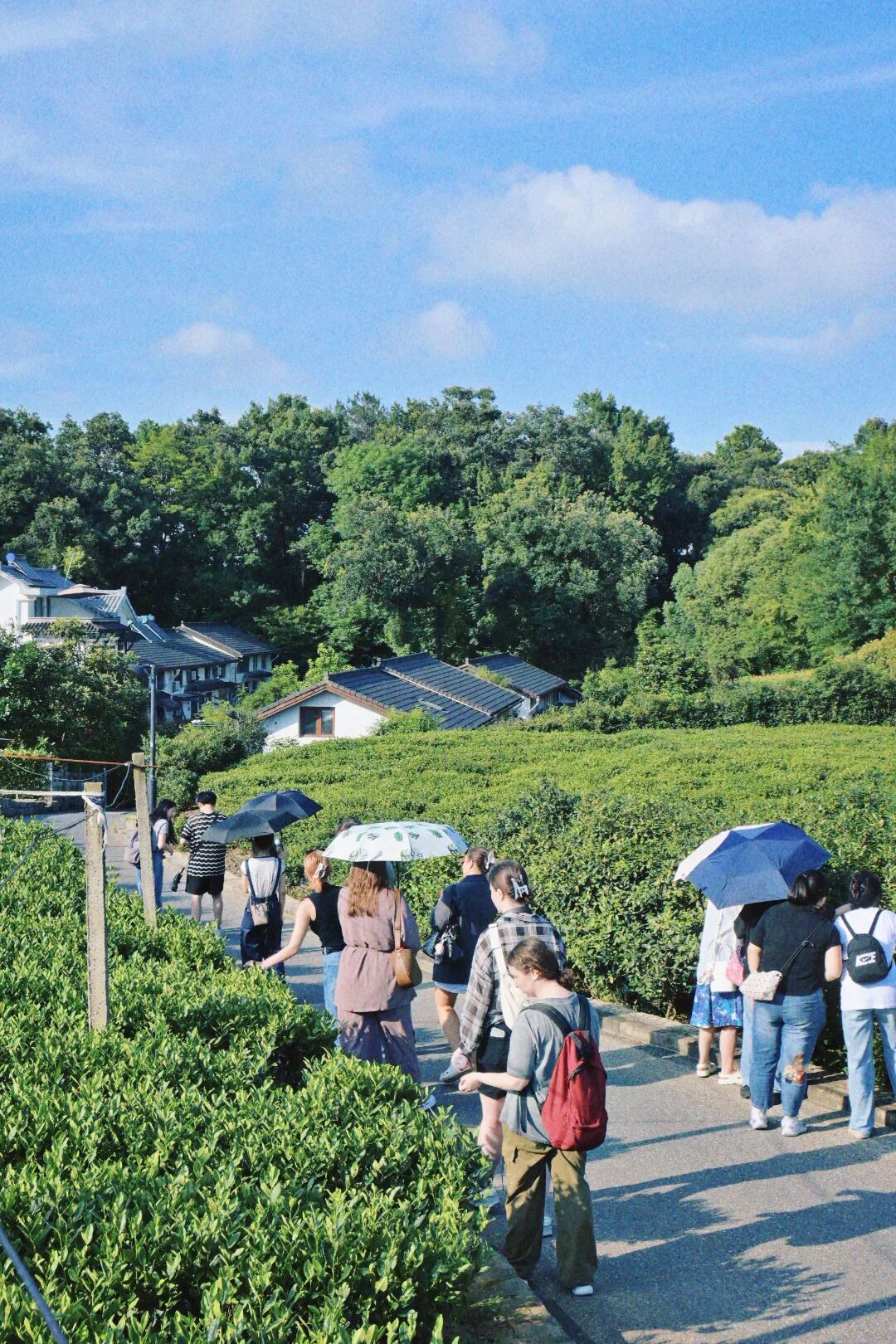 参观完中国茶叶博物馆,同学们的杭城探索之旅仍在继续。大家行走在双峰村,古朴的村落、宁静的氛围,让人仿佛远离了城市的喧嚣;漫步茅家埠与上香古道,夏日的杭州展现出静谧而绝美的一面。清澈的湖水、葱郁的树木、蜿蜒的小径,构成了一幅如诗如画的山水画卷。同学们纷纷停下脚步,用手机记录下这美丽的瞬间,也由衷赞叹杭州的自然环境,感受着这座城市的独特魅力。