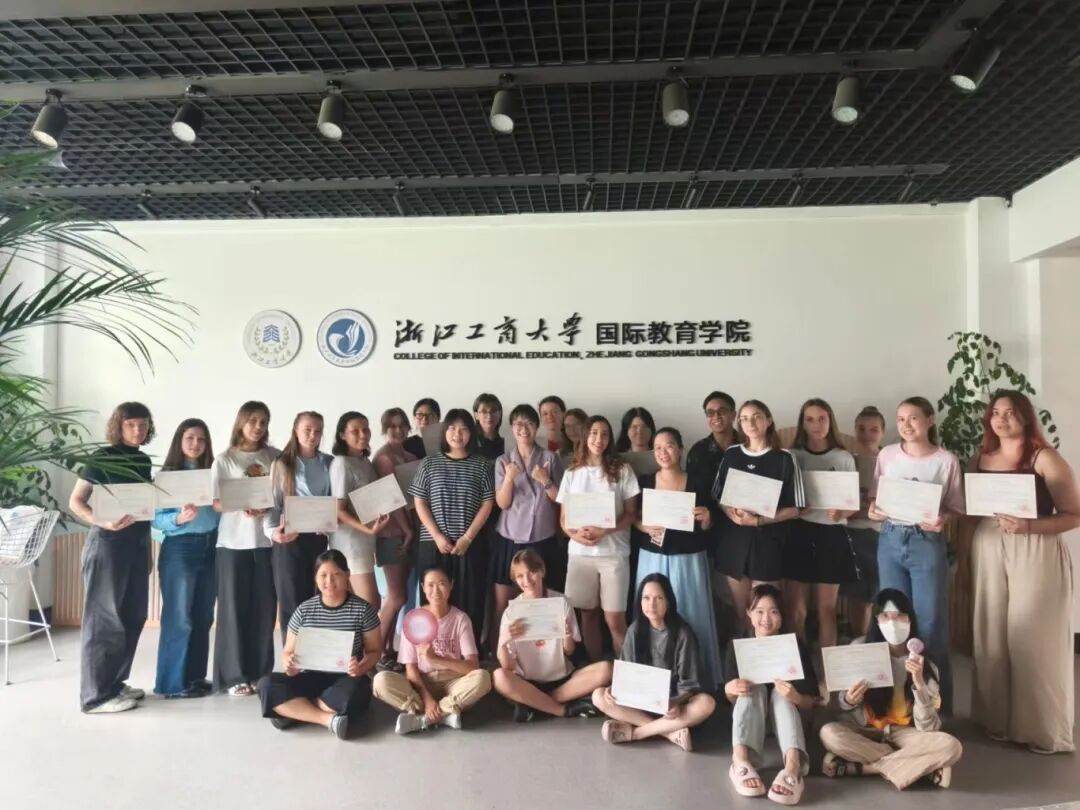 近日,由浙江工商大学大学国际教育学院主办的2025年外国留学生汉语言文化暑期班圆满落下帷幕。在为期四周的课程中,来自俄罗斯、越南、泰国、韩国、土耳其等国的34名留学生通过系统化的语言学习和沉浸式的文化体验,不仅提升了汉语水平,更深入感受了中国传统文化的独特魅力。