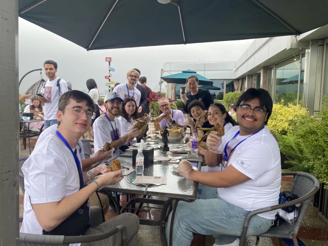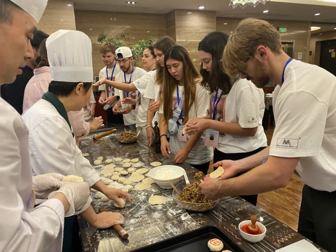 当天下午,夏令营前往浙江省特色文化主题金鼎饭店——杭州马可·波罗酒店进行实践考察。在酒店总经理俞凌女士的热情陪同下参观了酒店内的“马可波罗之家”,同学们认真聆听关于马可·波罗在杭州的传奇故事,仿佛穿越时空,感受到了古代中西方文化交流的浓厚氛围。随后在酒店工作人员的精心指导下,学生们亲手制作杭州特色美食——榨菜月饼,从揉面、包馅到烘焙,同学们全神贯注,认真学习每一个步骤。当一个个香气四溢的榨菜月饼新鲜出炉时,大家迫不及待地品尝自己的劳动成果。美国学生们表示,通过亲手制作和品尝榨菜月饼,他们不仅体验到了杭州传统美食的魅力,更深入感受到了杭州文化的丰富多彩。