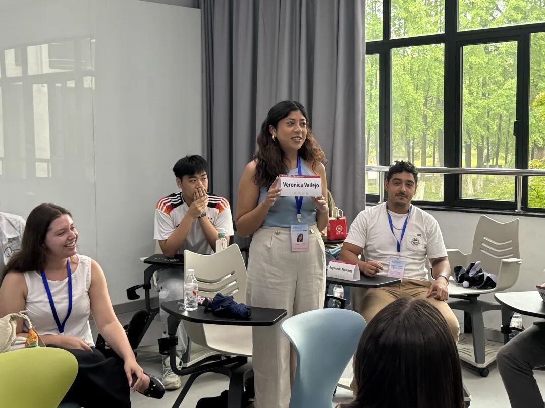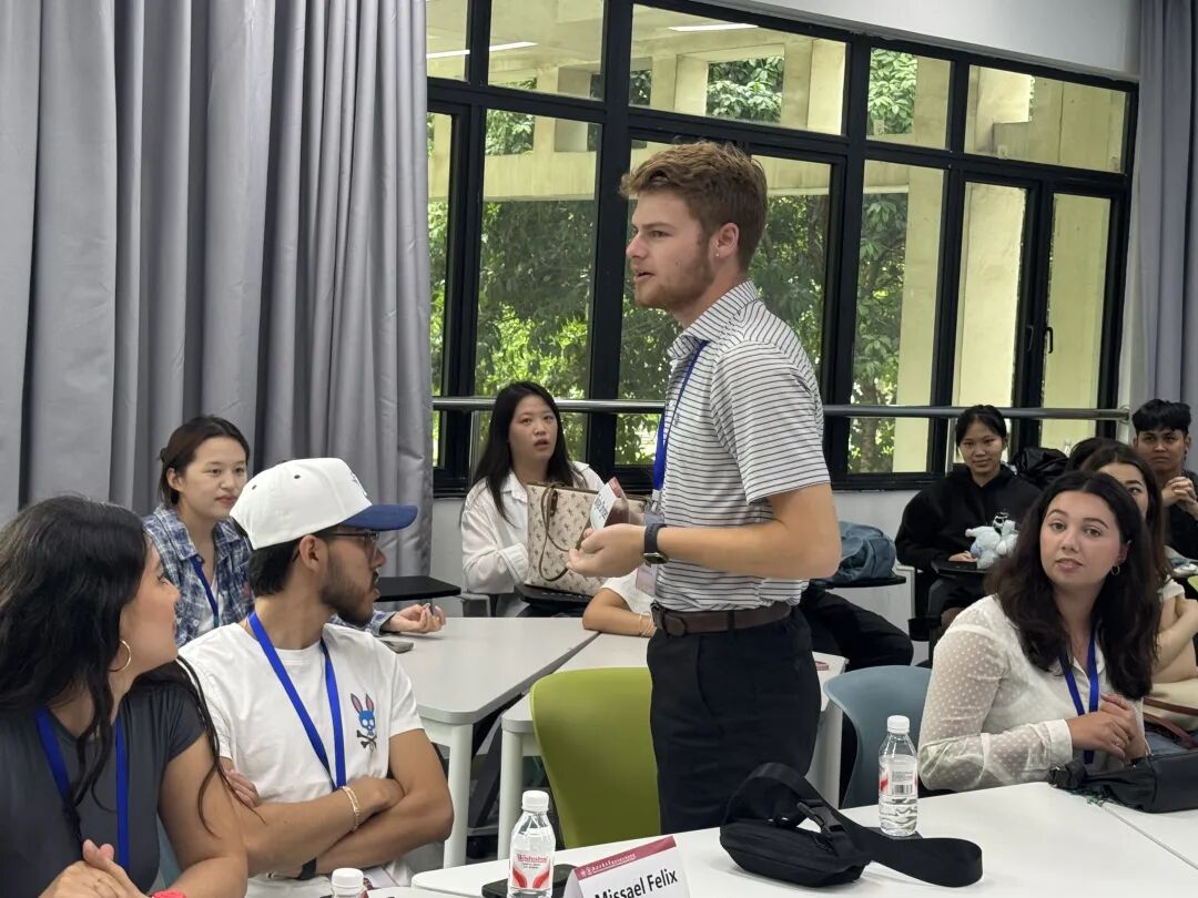 开幕式结束后,夏令营的师生们共同参与了一系列富有趣味的破冰活动。“文化关键词猜谜”“数字炸弹”等精心设计的游戏气氛热烈,极大地激发了大家的参与热情,让中美学生在轻松愉快的氛围中迅速拉近了彼此的距离。活动中,中美学生混合编组,共同完成“校园地标打卡挑战”。在参观浙江工商大学图书馆与校史馆的过程中,同学们通过实地探访,对学校深厚的学术传统与独特的文化魅力有了更加直观、深入的了解,进一步增进了对彼此学校的认知与认同。