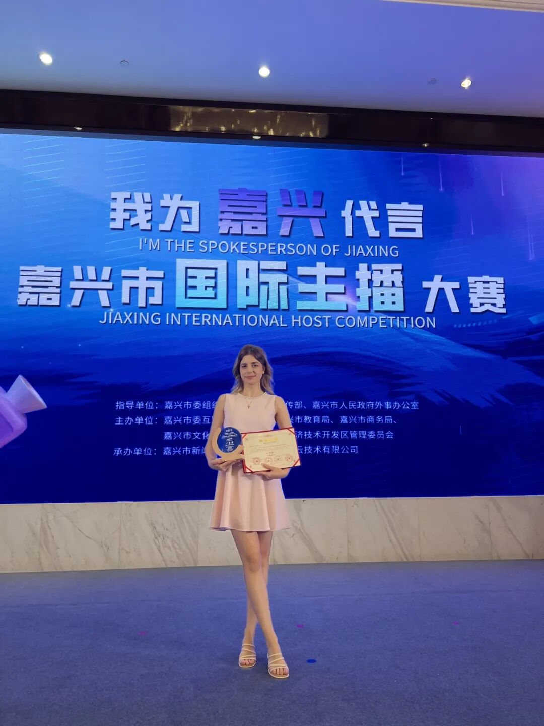 最终,经过严谨细致的评审,萨莎获得“企业推介官”一等奖,林雅立和麦克获得“文旅推介官”称号。国际生们通过参加比赛获得了很多收获,萨莎表示,通过参与国际主播大赛,她有机会走进嘉兴本地的优秀企业,开拓了视野,更对自己的专业学习有了全新的思考。